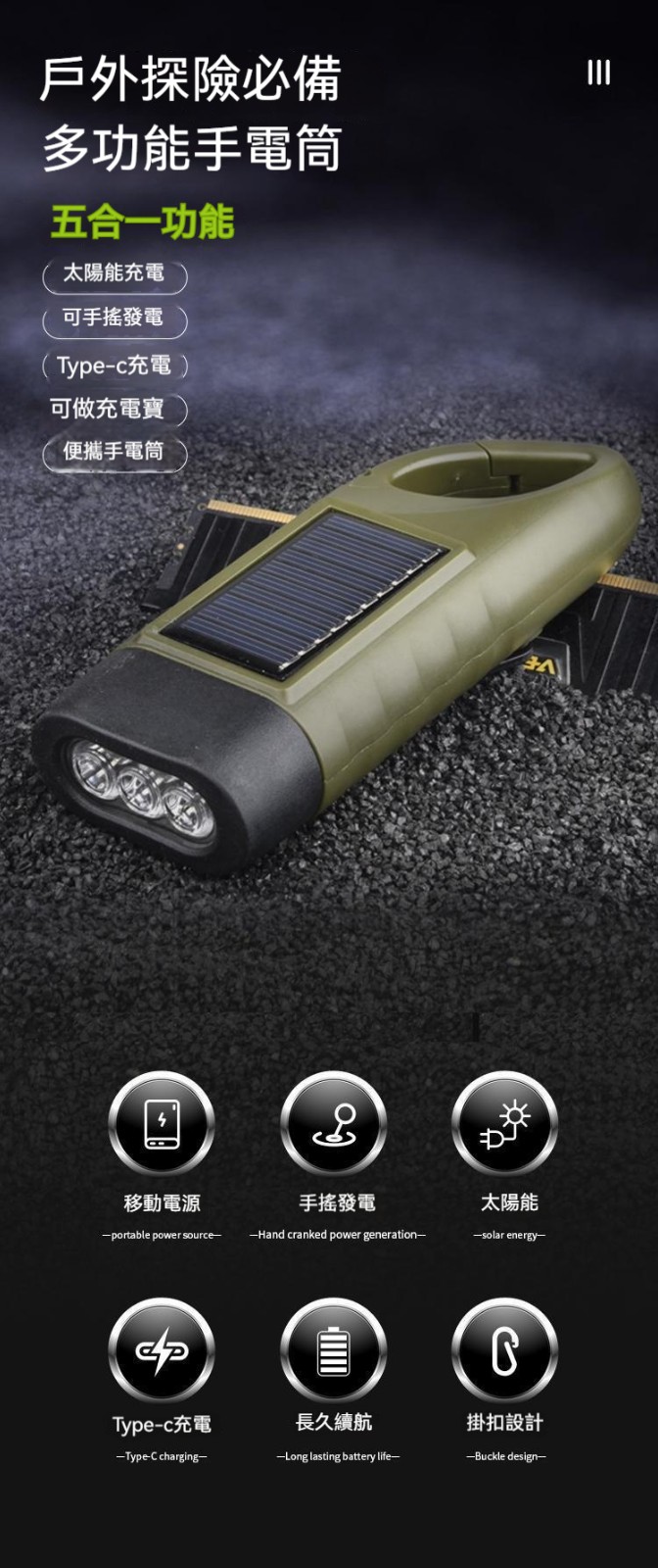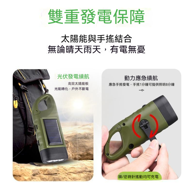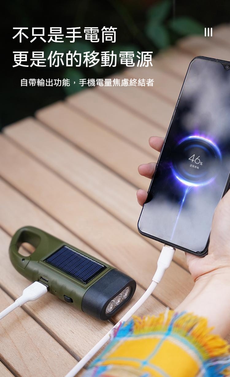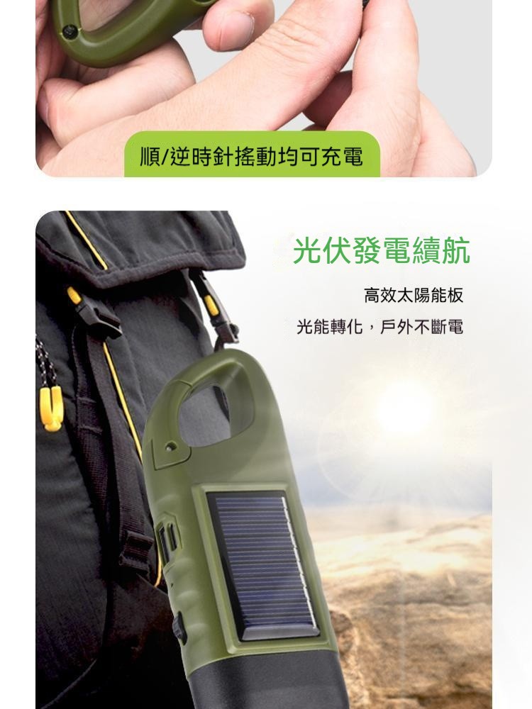 搶!【低至驚爆價】便攜戶外太陽能LED應急手搖 發電發電手電筒
